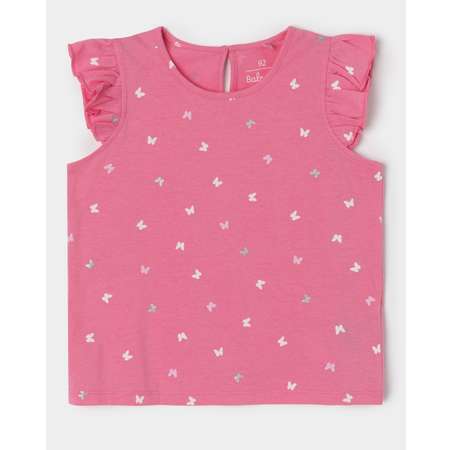 Розовая футболка для девочки BabyGо, декорированная принтом с бабочками.