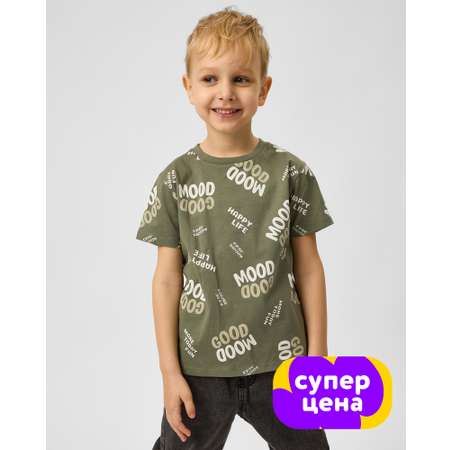 Футболка для мальчика Futurino в цвете хаки, декорированная принтом с надписями.