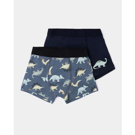 В комплекте Futurino трусы-боксеры для мальчика, декорированные принтом динозаврами - синие и тёмно-синие.