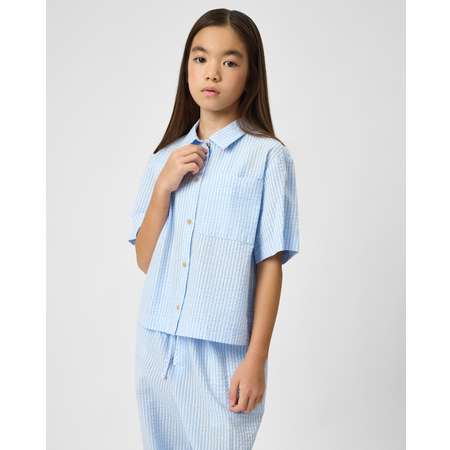 Полосатая текстильная рубашка для девочки Futurino голубого цвета.