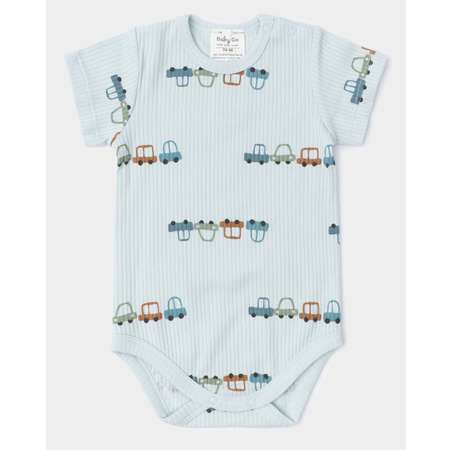 Голубое боди в рубчик для мальчика BabyGо с цветным принтом.