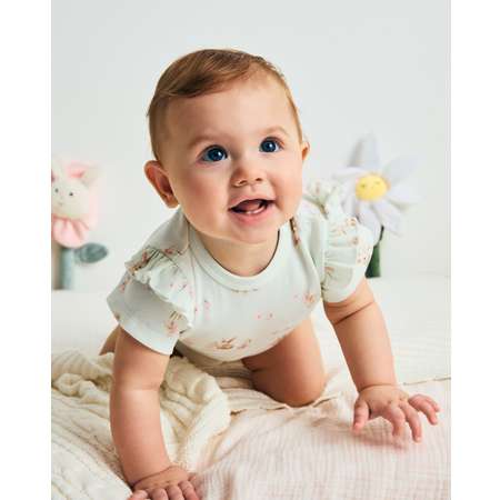 Боди для девочки BabyGо с нежным цветным принтом и оборками.