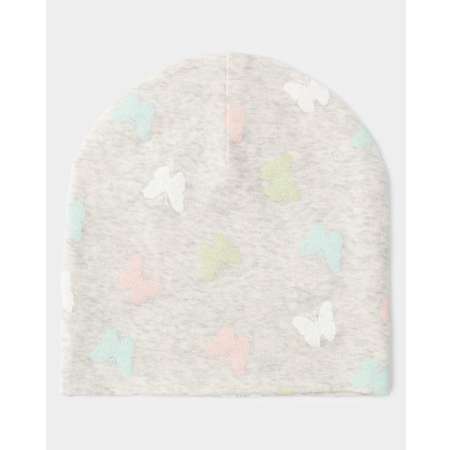 Светло-серая шапка для девочки BabyGo, декорированная цветным принтом с бабочками.