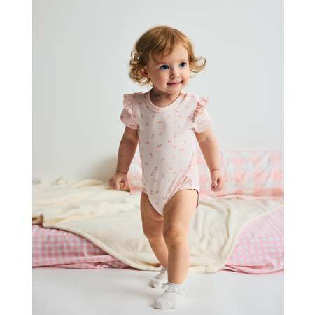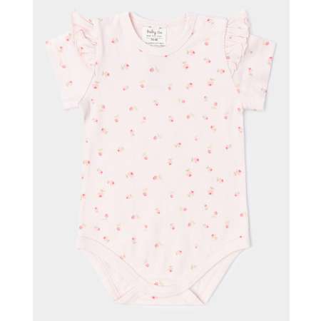 Светло-розовое боди для девочки BabyGо с оборками и нежным цветочными принтом.