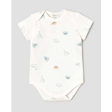 Белое боди для мальчика BabyGо, декорированное принтом с динозаврами.