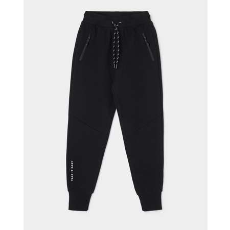 Брюки для мальчика Futurino чёрного цвета, с надписью "Take it easy".