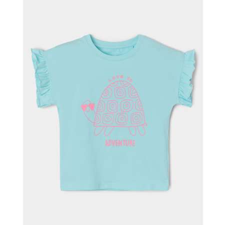 Мятная футболка для девочки Futurino, декорированная оборками и принтом с черепашкой.