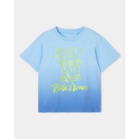 Футболка для мальчика Futurino с градиентом в синем цвете и ярким летним принтом.