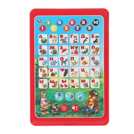 Игрушка-планшет – креативный и полезный подарок для развития и игры. Такой планшет поможет ребёнку интересно и с пользой провести время, поможет выучить буквы и цифры, познакомит с цветами. Для проверки полученных знаний в планшете предусмотрен режим экзамена. В процессе обучения можно устроить музыкальную паузу и послушать весёлые потешки. Игрушка имеет компактный размер, поэтому её будет удобно брать с собой на прогулки и в путешествие.