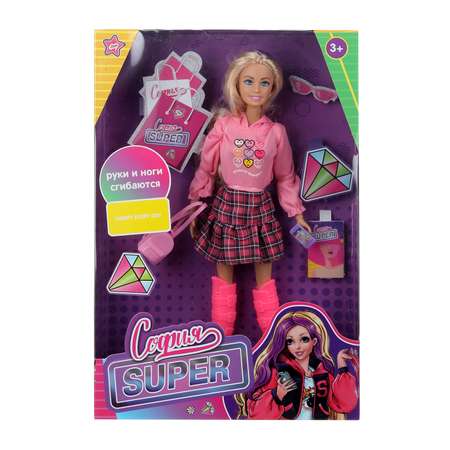 Суперстильная София одета в розовую кофту, клетчатую юбку и высокие розовые сапоги. Одежду и аксессуары легко снять и надеть. С такой модной куклой девочке будет интересно и весело играть: благодаря тому, что руки и ноги куклы подвижны, им можно придать любое положение. У Софии очень длинные красивые волосы, которые хозяйка куклы сможет заплетать в разные причёски. Наличие дополнительных аксессуаров в наборе сделает игры с куклой более разнообразными и интересными.