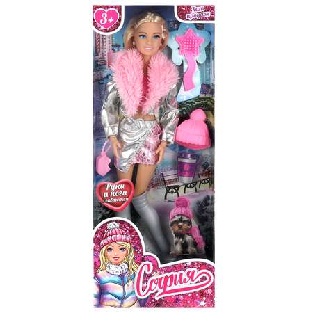 Модница София одета в стильный наряд, состоящий из розового топа, кожаной юбки с поясом и серебристой куртки с розовым меховым воротником, на ногах высокие сапоги. Одежду и обувь легко снять и надеть. С такой модной куклой девочке будет интересно и весело играть: благодаря тому, что руки и ноги куклы подвижны, им можно придать любое положение. У Софии длинные красивые волосы, которые хозяйка куклы сможет заплетать в разные причёски. Детально проработанный дизайн игрушки вдохновит девочку на новые игровые сюжеты.