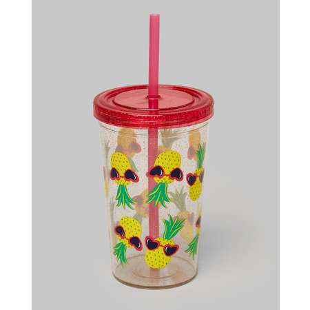 Блестящий стакан Futurino Home в ярком летнем дизайне "Ананасы", с крышкой и трубочкой.