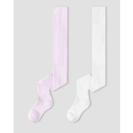 В комплекте Futurino однотонные колготки в рубчик для девочки - белые и сиреневые.