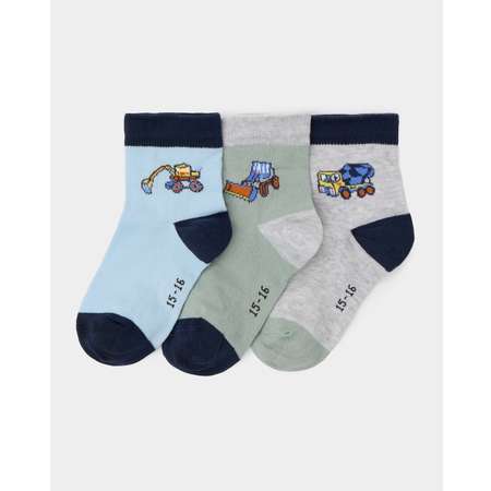 В комплекте Futurino три пары носков для мальчика с цветным принтом - голубые, зелёные и серые.
