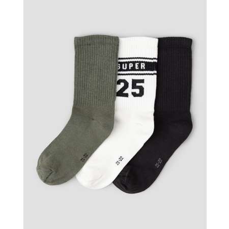 В комплекте Futurino три пары носков для мальчика - белые с принтом, а также хаки и тёмно-серые.