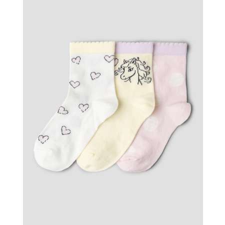 В комплекте Futurino три пары носков для девочки с нежным принтом - белые, жёлтые и светло-розовые.