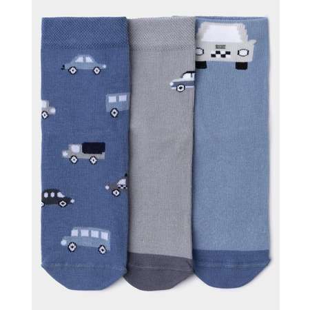В комплекте Futurino три пары носков для мальчика, декорированных цветным принтом - серые, голубые и синие.