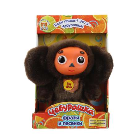 Малыш будет рад знакомству с таким очаровательным пушистым персонажем. При нажатии на звуковую кнопку, располагающуюся на груди, Чебурашка будет петь песенку «Я был когда-то странной...» и говорить несколько фраз героя. С этой игрушкой ребёнок может воссоздать уже знакомые по мультфильму сюжеты или придумать новые. Милый Чебурашка станет малышу добрым другом, которого можно взять с собой на прогулку или в поездку. Наличие специального кармашка на липучке обеспечивает лёгкую замену батареек.